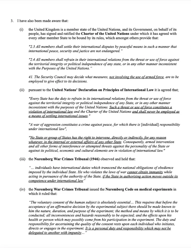 - The Department of Health and Social Care. the National Health Service, Public Health England, The National Health Security Agency, MHRA, UK Ministers of State, civil servants, employees, advisors and members of the medical profession of experimental gene therapy falsely and deceptively described as safe and effective vaccines and administered without their informed consent to millions of UK residents and nationals resulting in harm, serious injury or death to tens of thousands of children, women and men.